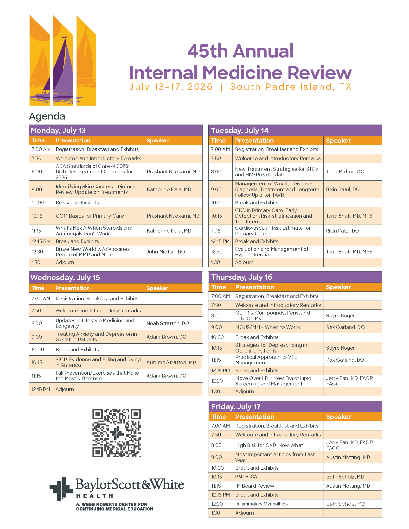 We're glad you can join us for the 44th Annual Internal Medicine Review.